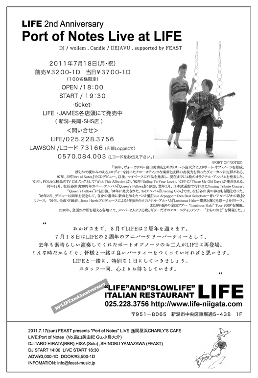 昨日は、LIFEの2周年パーティ、ポート・オブ・ノーツさんのライブでした。